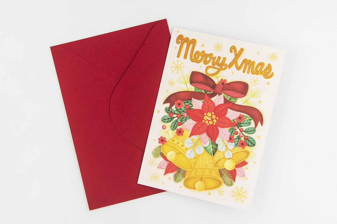 This Merry Xmas Jingle Bells Christmas Card is A6 size (105 x 148mm), is printed on 340sgm paper, and has a lovely satin finish. It comes with a seasonal red envelope.