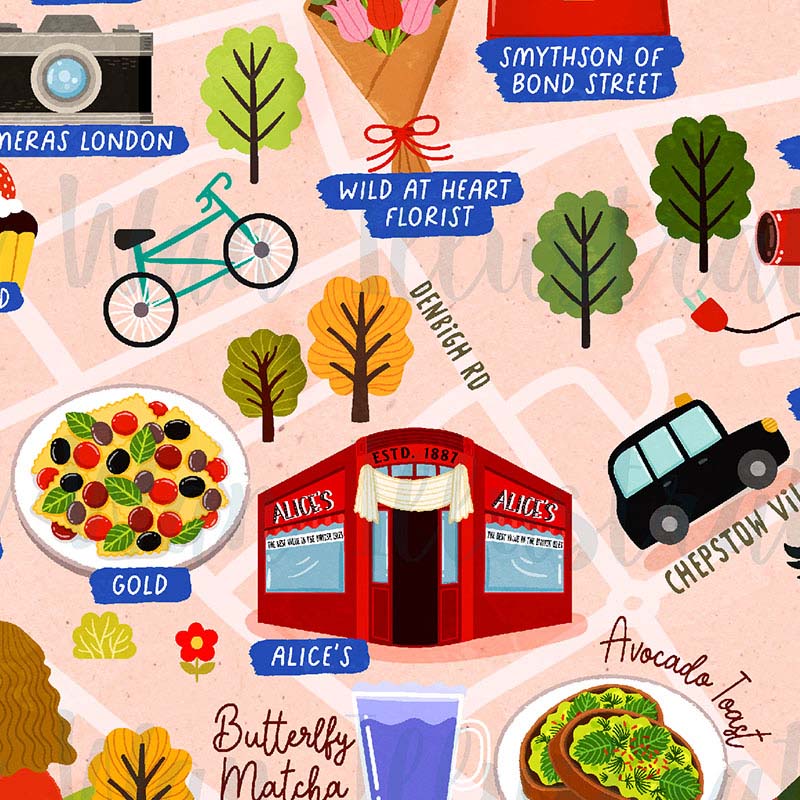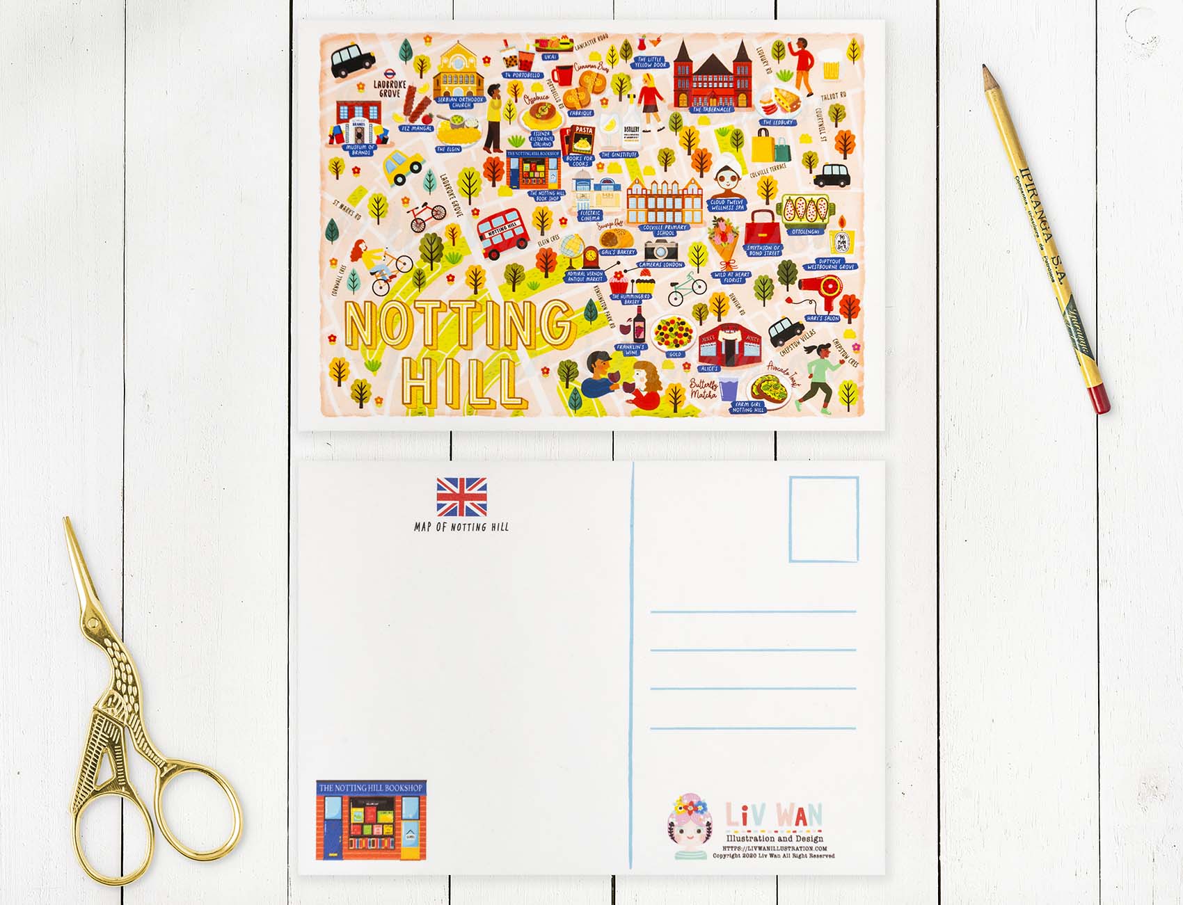 Crafted with meticulous attention to detail, this Notting Hill map postcard showcases the diverse and captivating culture that makes Notting Hill truly unique. From the stunning architecture to Portobello Road market, the famous bookstore from the film Notting Hill, this is an amazing part of London in which I’m fortunate to do a lot of work.