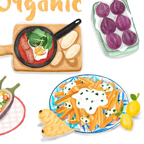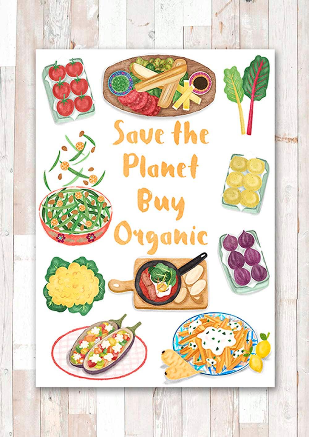 The standard size for this organic food poster is 10×8 inches (25x20cm) but I have also added a lot of variations to include different image sizes. Everything is printed onto top-quality photo paper and depending on the location the print will be posted flat or in a photo tube. Please note this doesn’t include a frame.