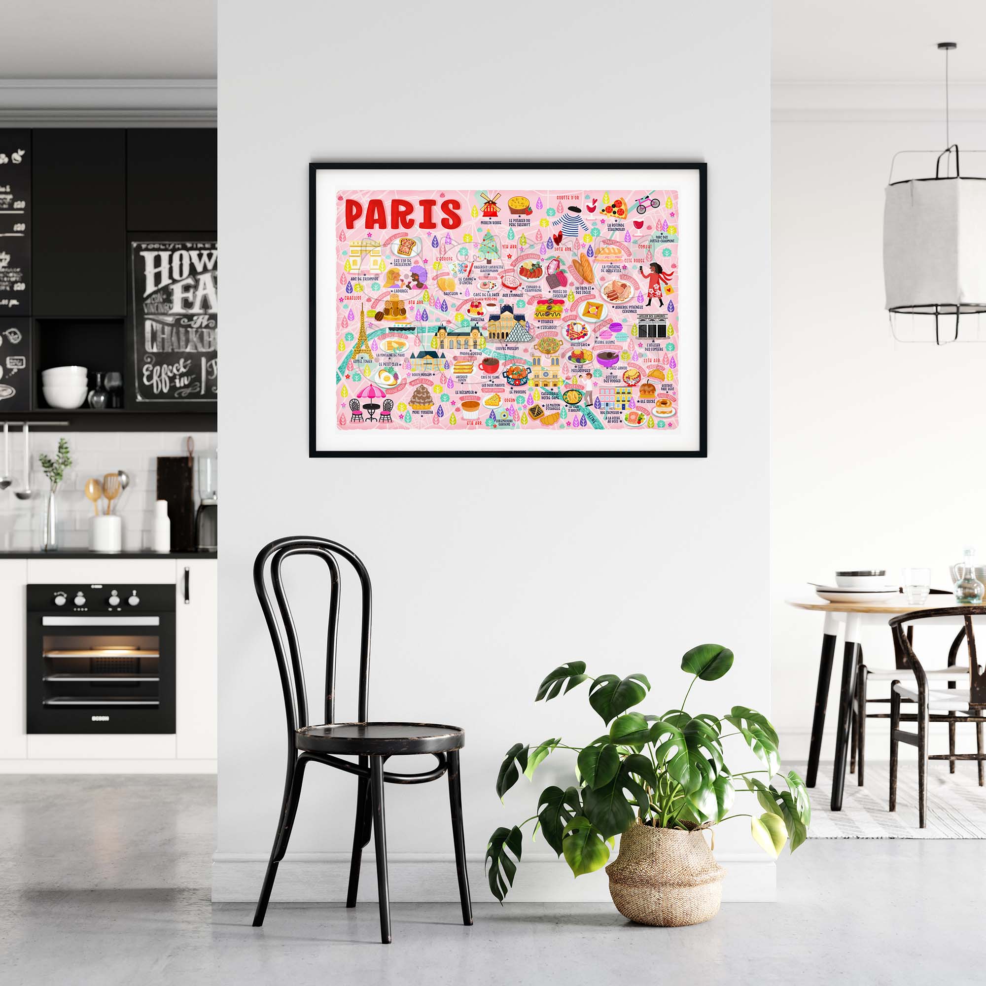 Paris map poster. Paris is one of the most beautiful cities in the world and has some of the most interesting and exciting cultures, sights and foods.