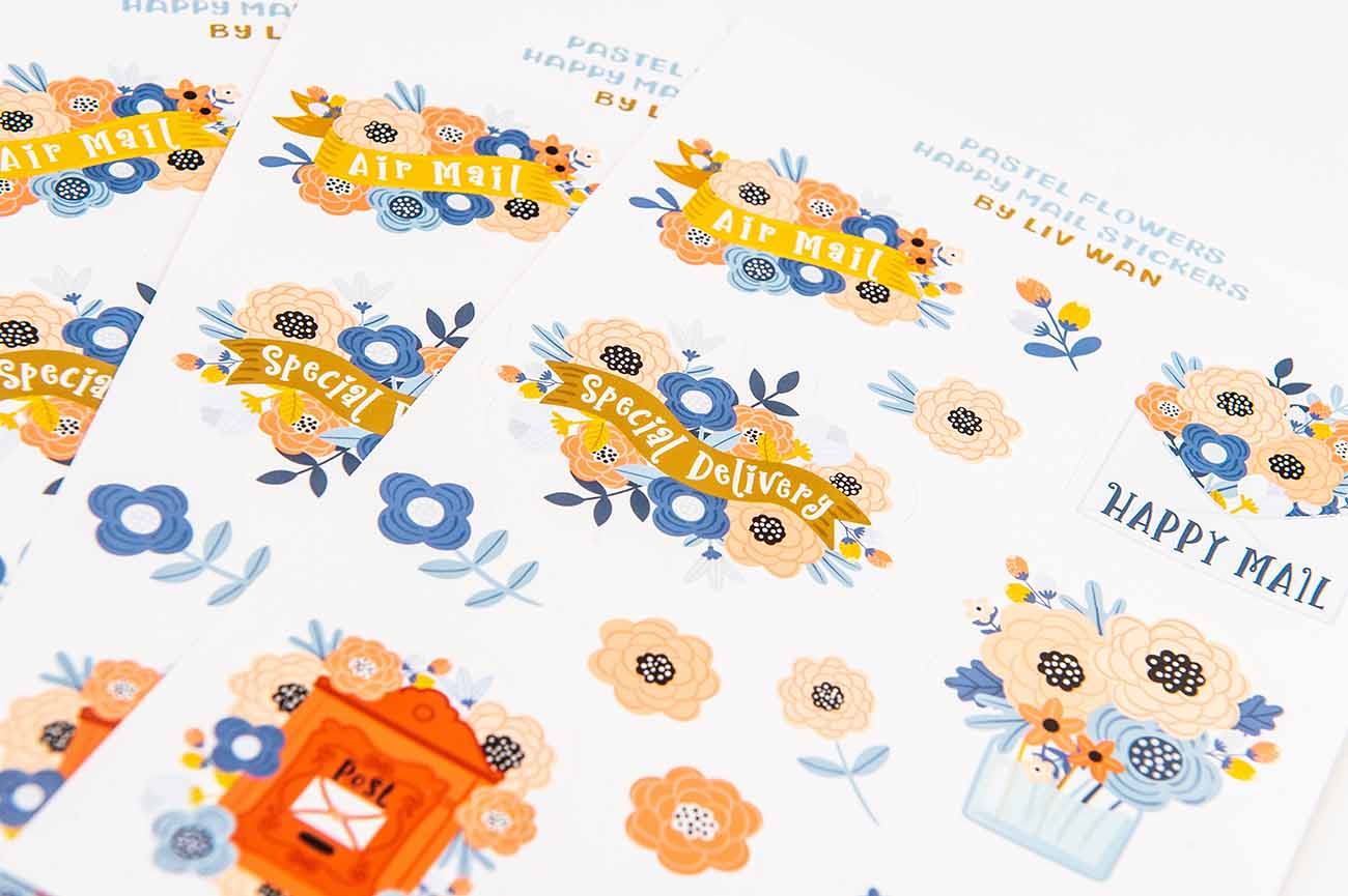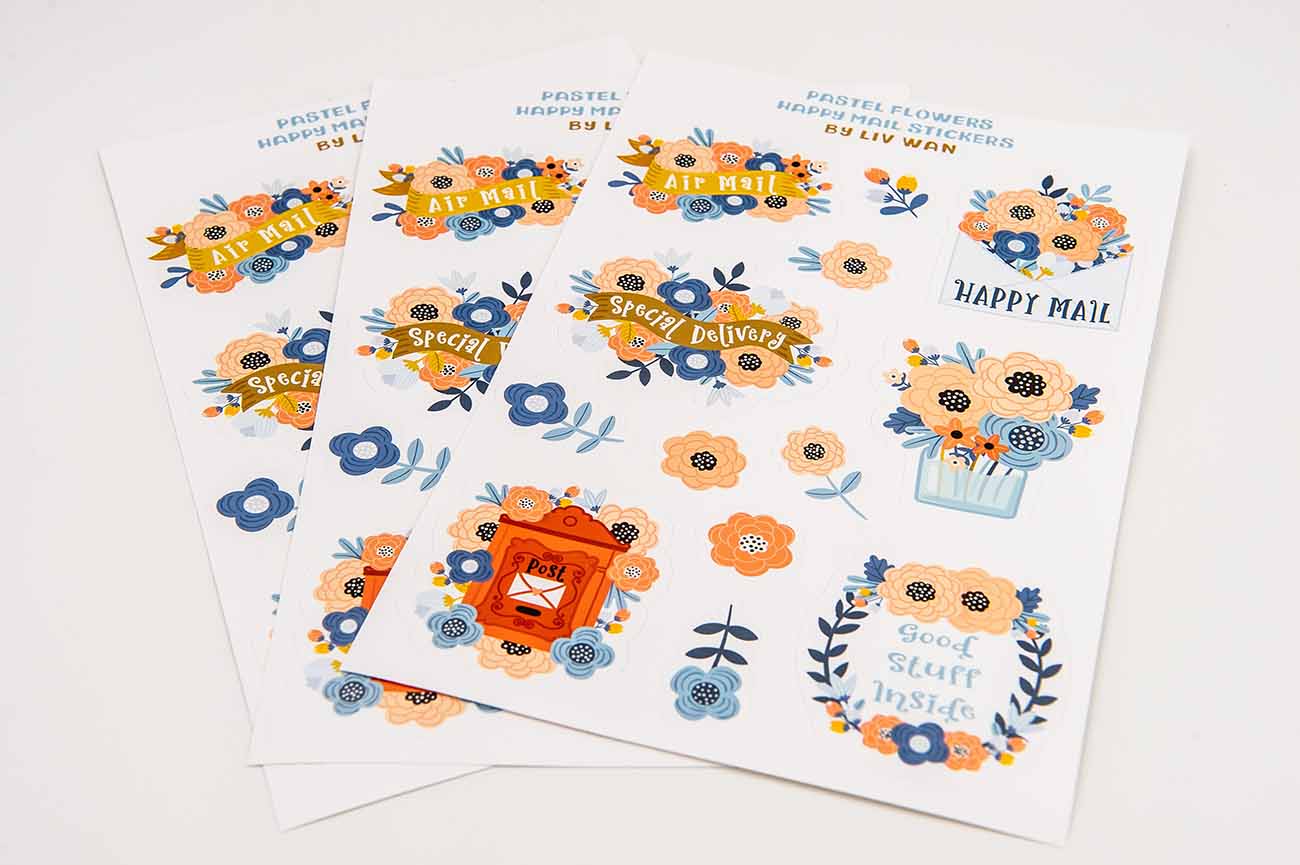 I love pastel colours and recently worked on a project where I had to create flower wreaths and mail related stickers. I can’t sell those stickers but here are some stickers with a very similar theme. This Pastel Flowers Sticker Sheet was a lot of fun to create.