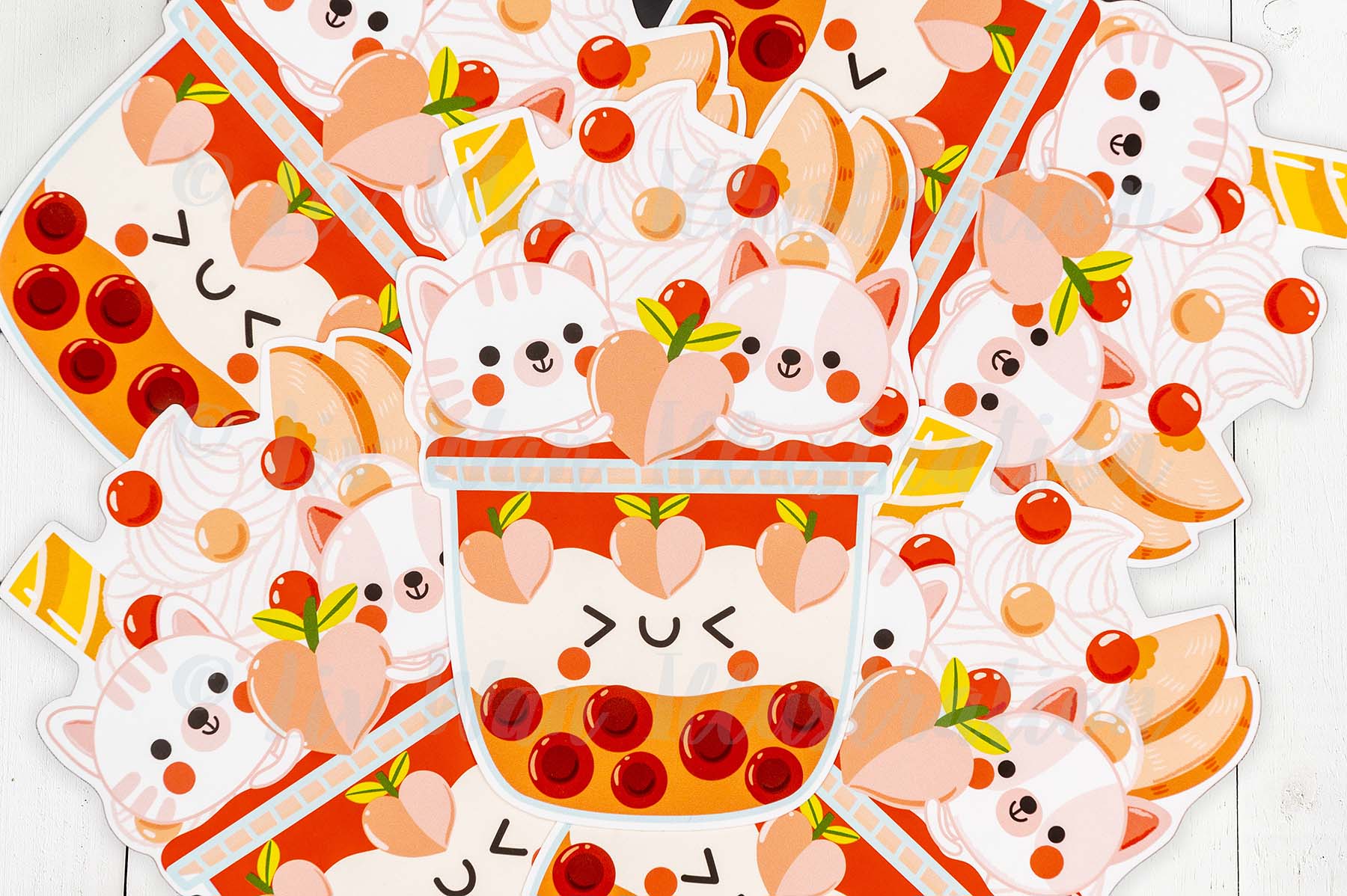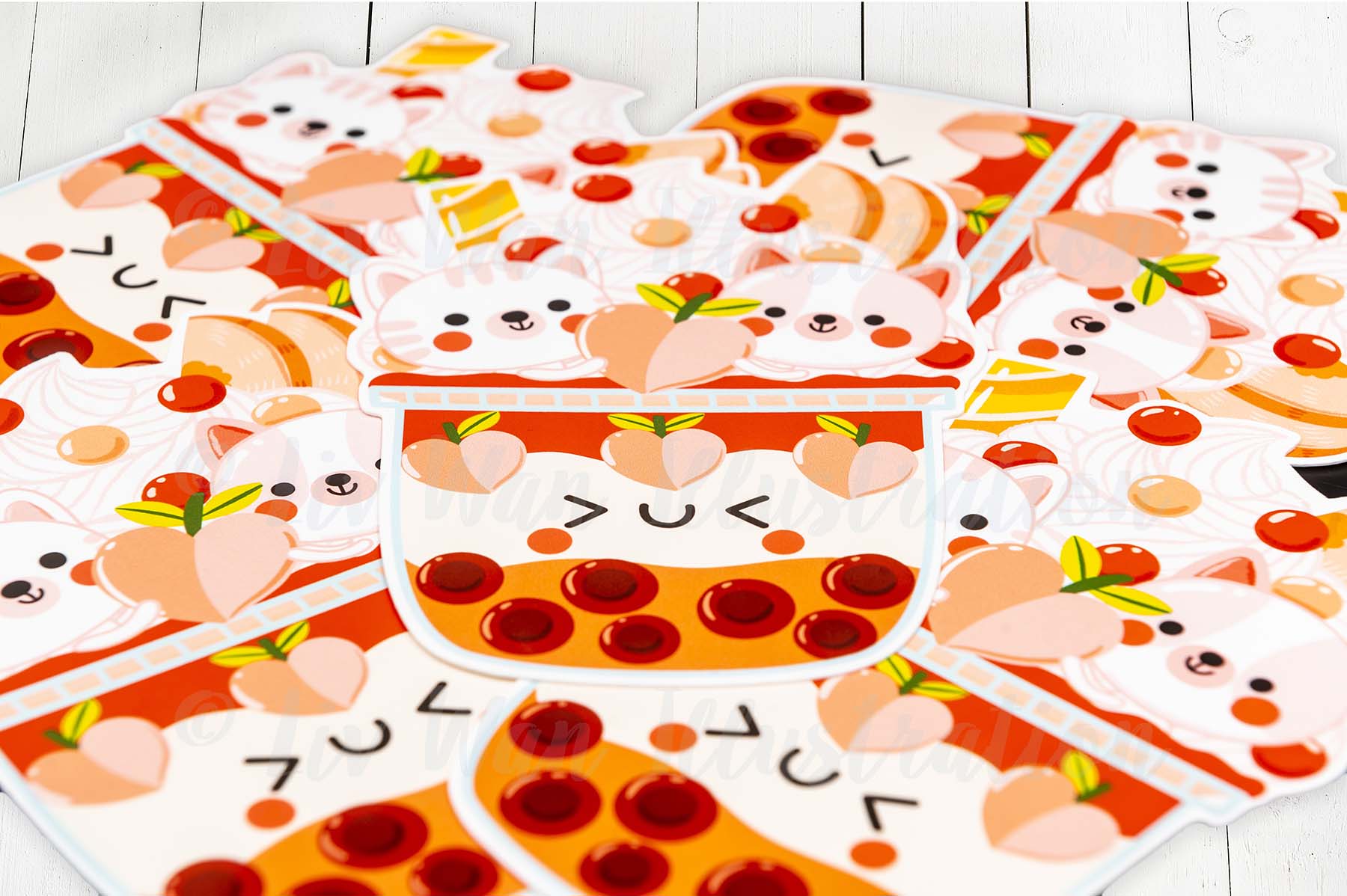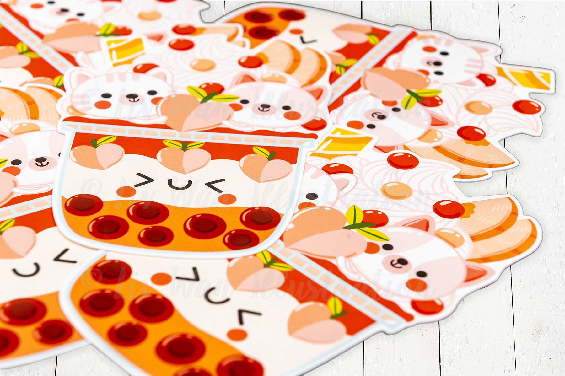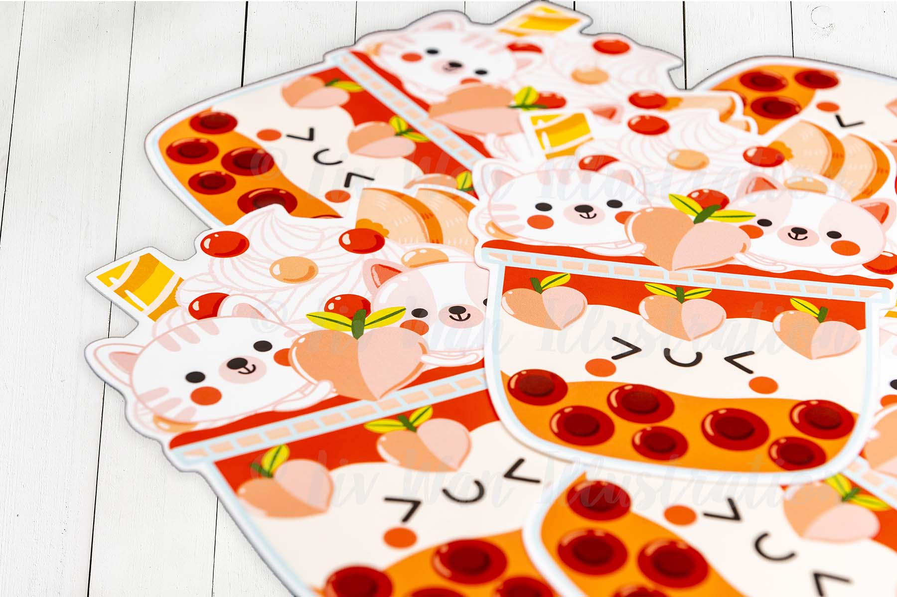 This Peach Kitten Bubble Tea Postcard is a die-cut postcard which I have expertly cut out myself using a commercial plotter cutter. These are really expensive but ensure the lines are cut perfectly and everything is exactly the same size.