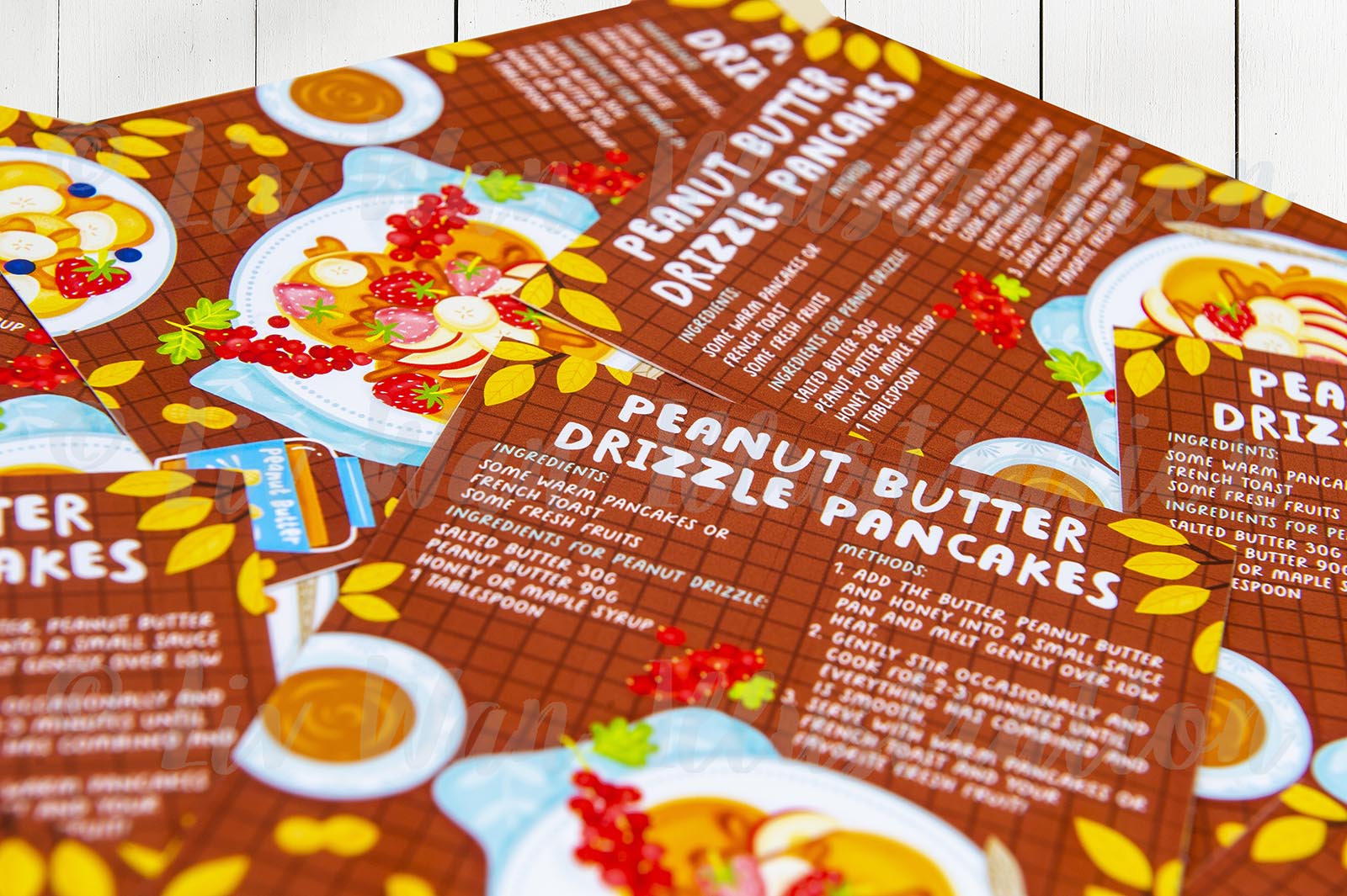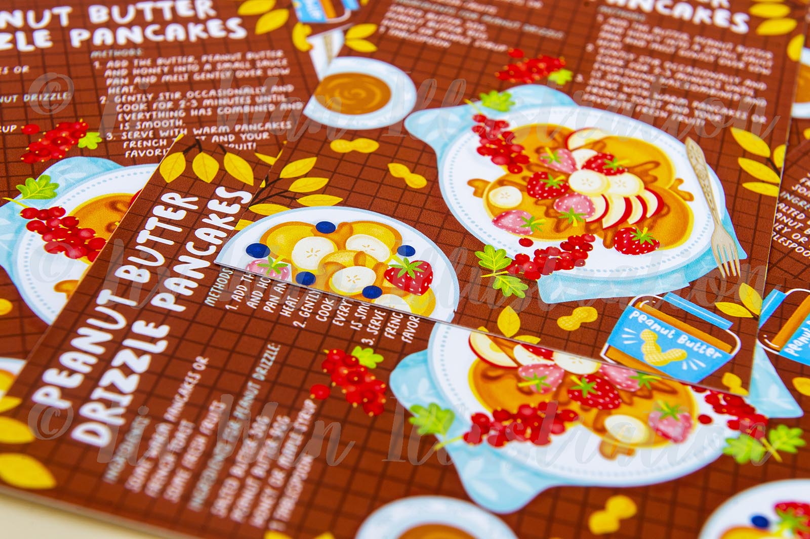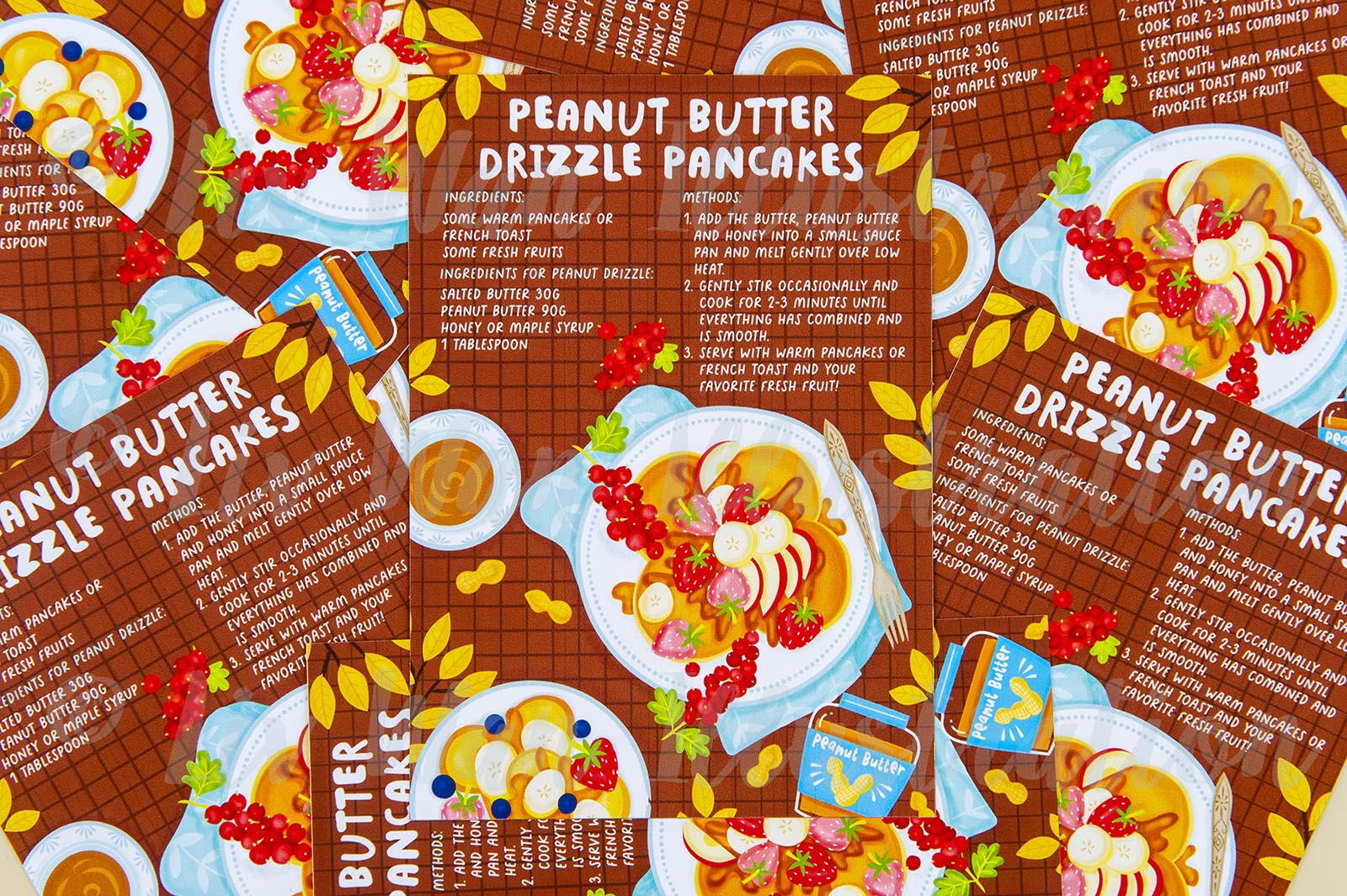 This Peanut Butter Pancakes Recipe Postcard is 10.8 x 14.4cm in size. This Peanut Butter Pancakes Recipe Postcard can be bought as a single card or in multiples. It is printed on fine art cotton rag paper, by myself, here in the UK. This is an exceptionally high-quality card with beautiful colours and it’s lovely to write on.