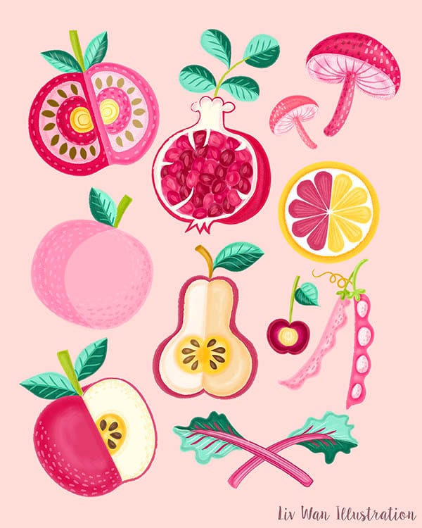 This Pink Food poster illustration and wall art contains some of the most popular and delicious pink fruits and vegetables. This poster is perfect for your kitchen wall, your dining room, and pretty much anywhere in your home.