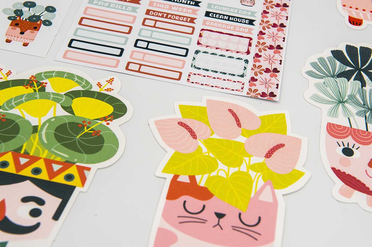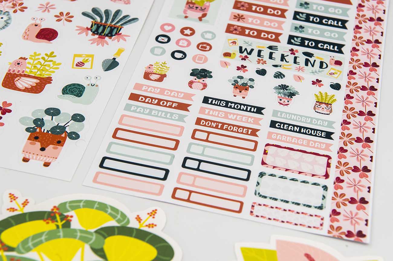 Completely unique, the 5 postcards from this Plant Lovers Collection are A6 in size and have really unique cut out shapes. The planner sticker sheet is printed on premium matte vinyl and includes 48 stickers, which includes one strip of usable washi tape. The other sticker sheet includes 26 stickers printed on premium glossy vinyl.