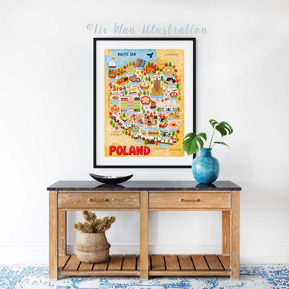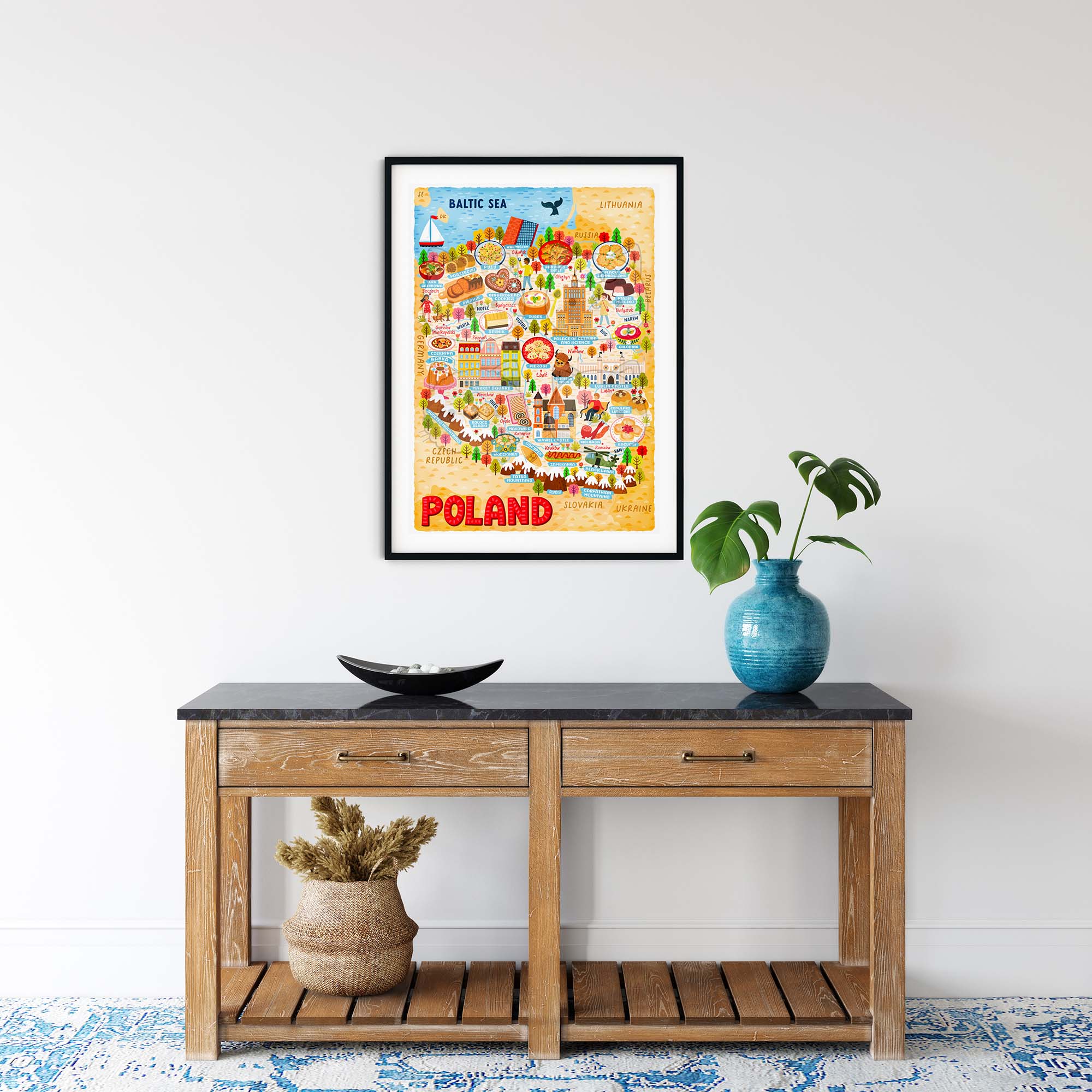 Another country I’ve yet to visit is Poland, but living in the UK, I’m surrounded by and have made friends with many Polish people and I’ve been able to learn about their culture, locations, and foods. What I’ve learned is Poland is extremely beautiful with a really diverse culture. With this information, I’ve created a Poland Map Poster.