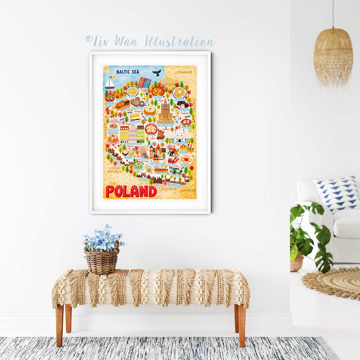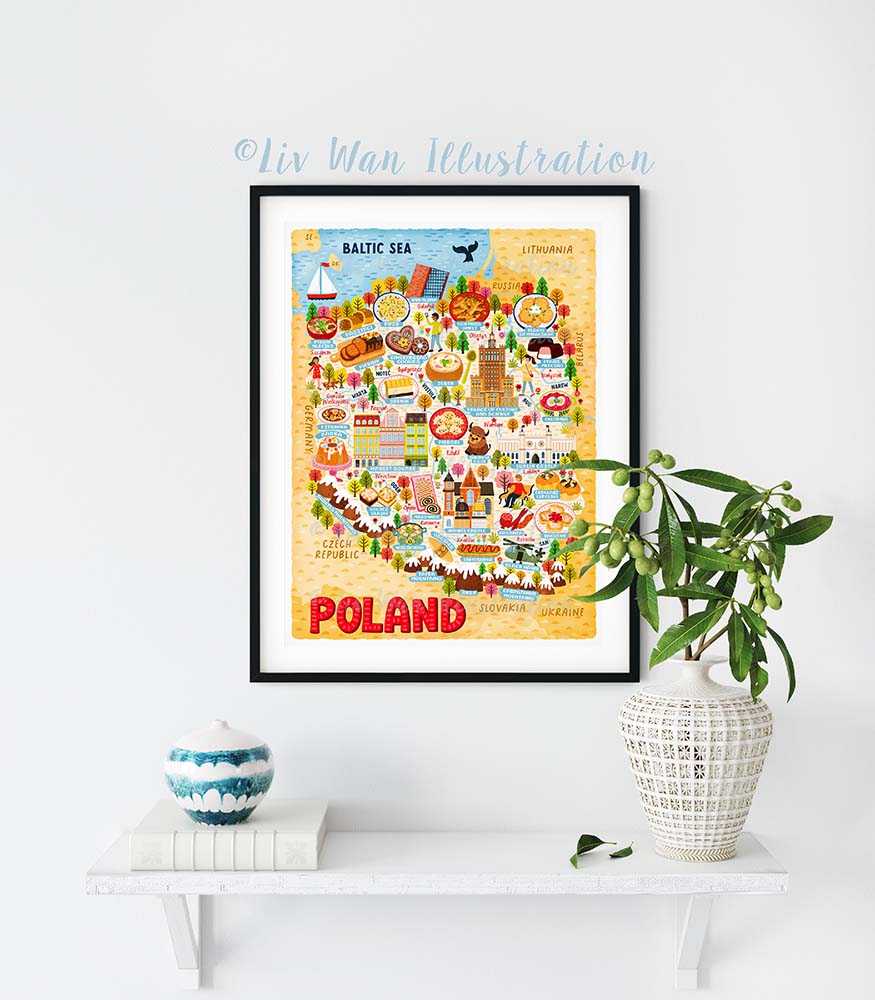 Poland map poster | Fun Illustrated map of Poland