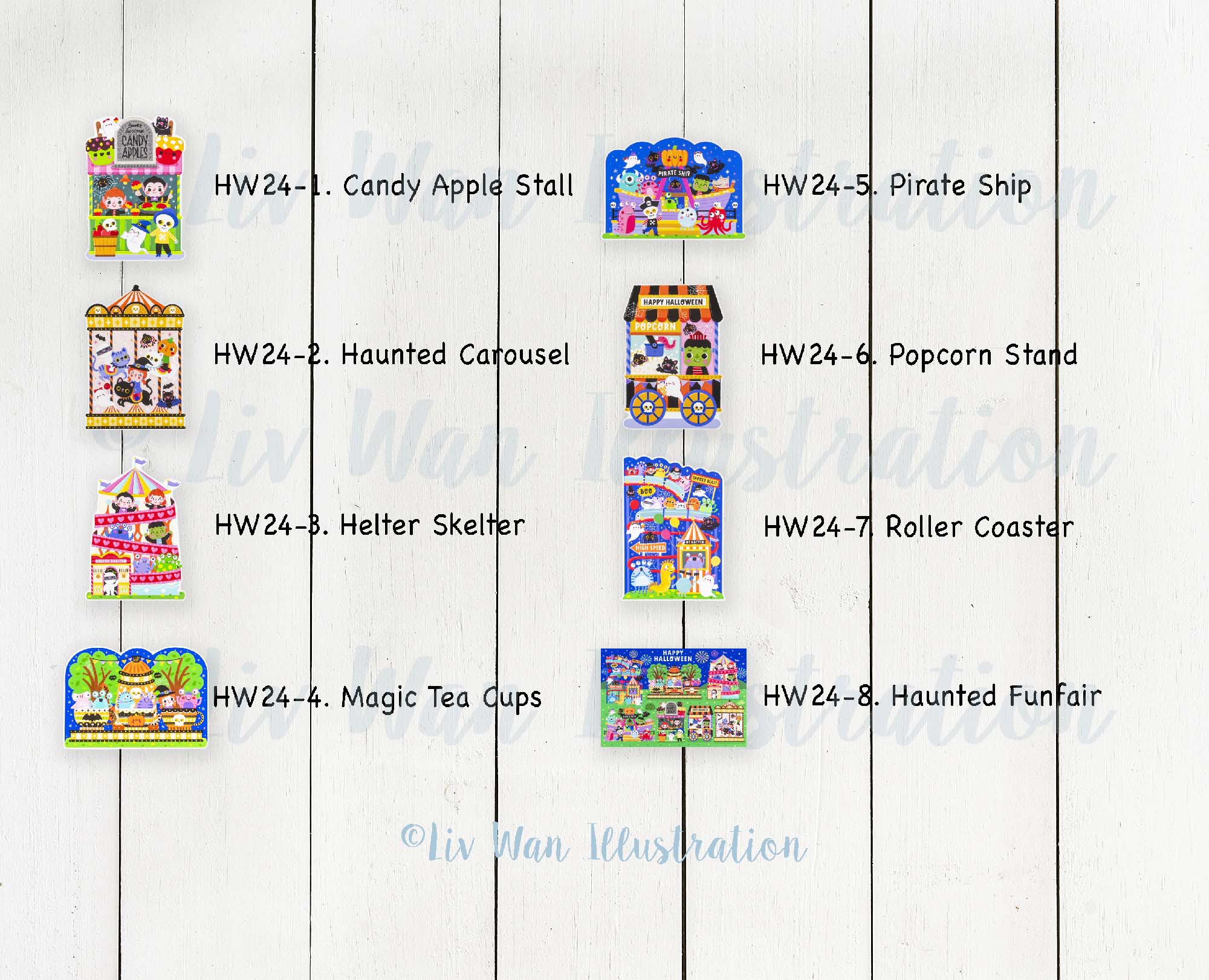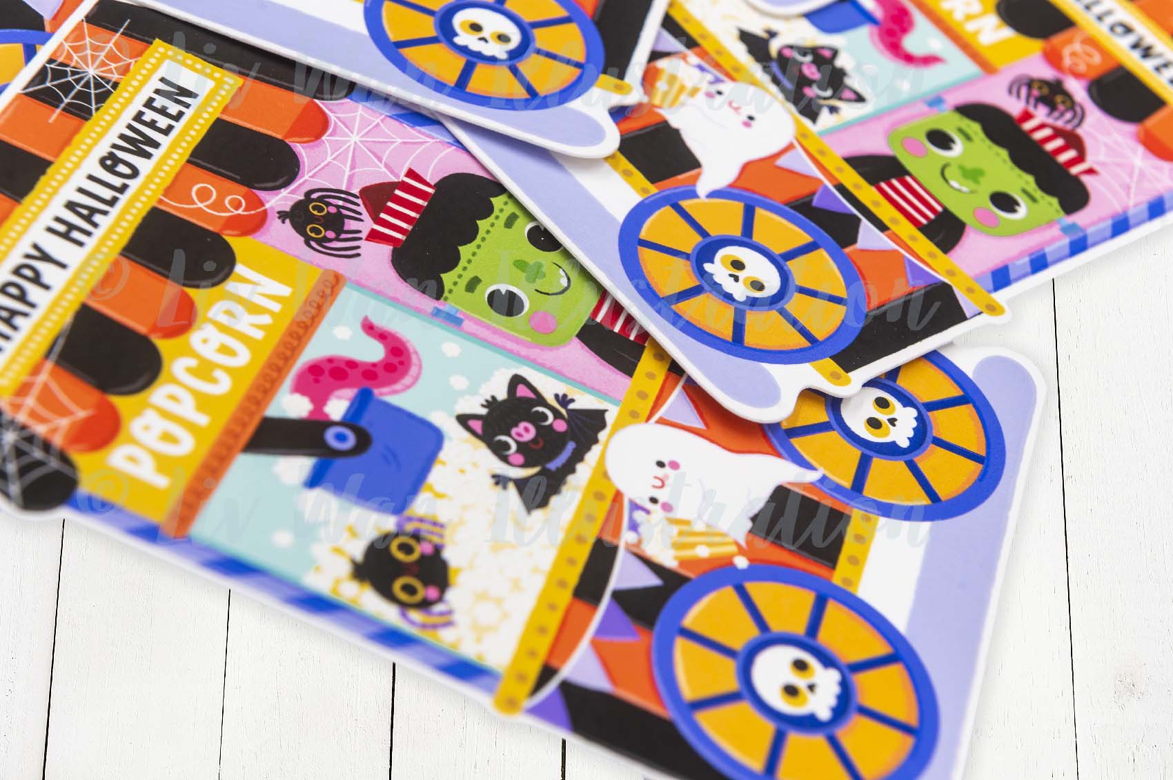For 2024 I’ve created either brand new postcards which is made up of 7 die-cut shaped postcards and 1 rectangle with a haunted fairground theme.