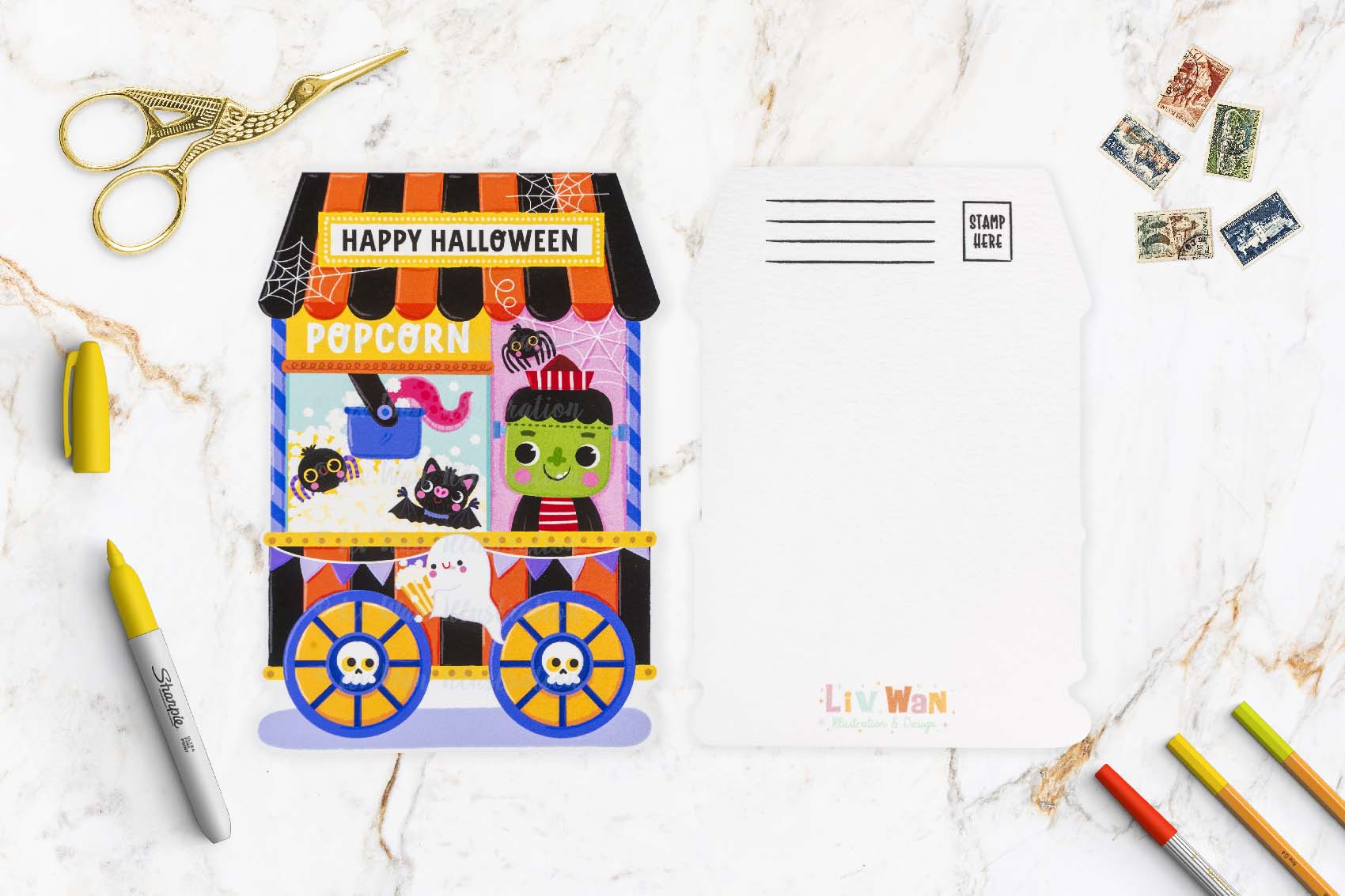 I love halloween so this Popcorn Stand Postcard is the perfect halloween gift celebrating this super fun season.