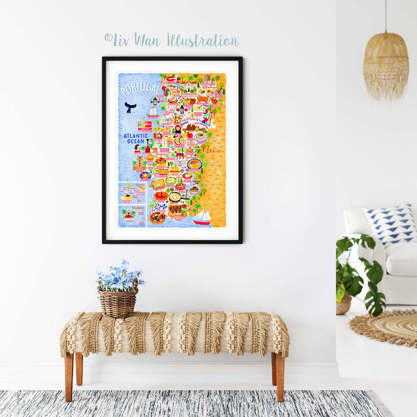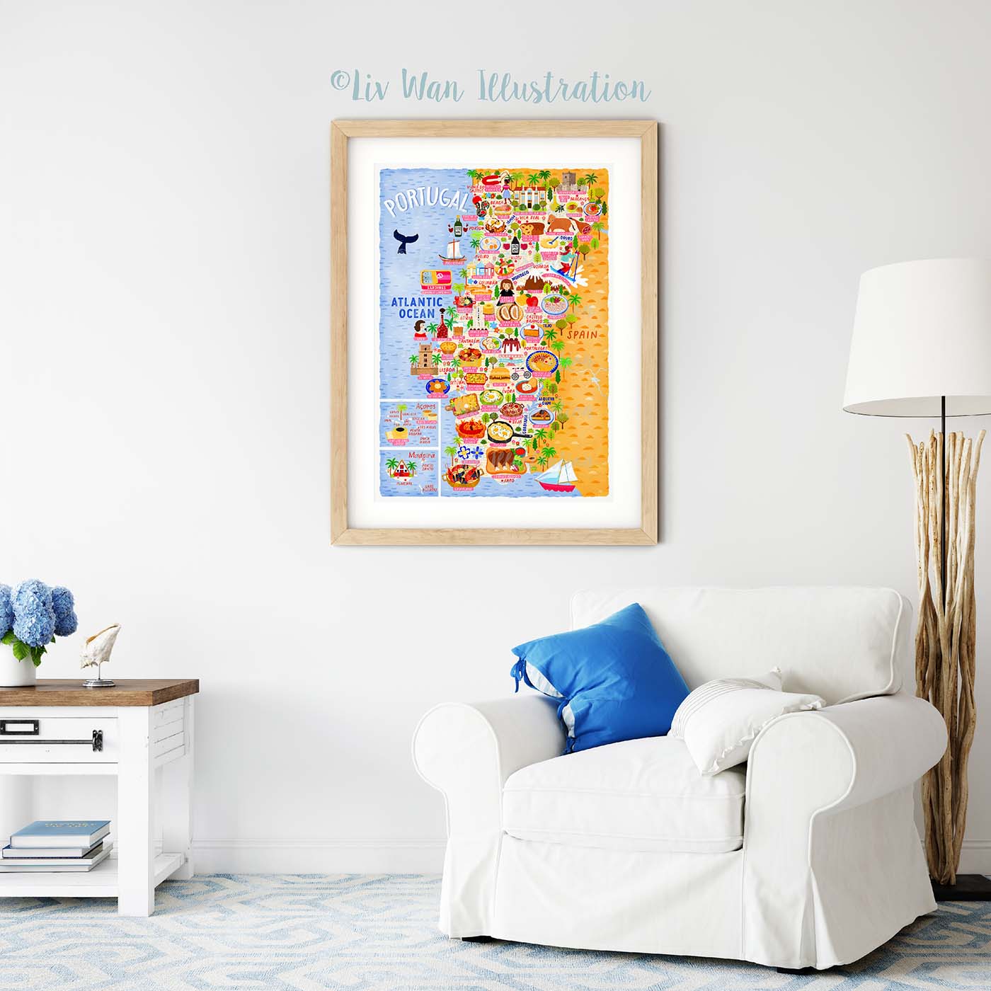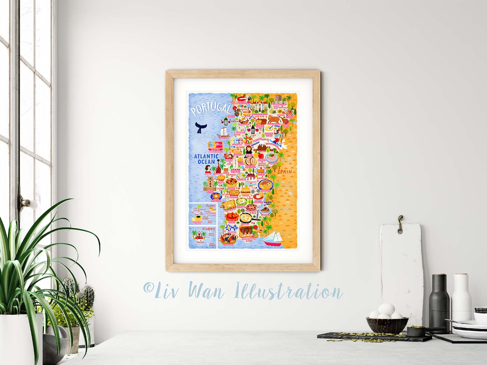 As with all of my maps, there are absolutely tonnes of detail in this Portugal Map Poster. There are people, buildings, cities, animals, food and many other things.