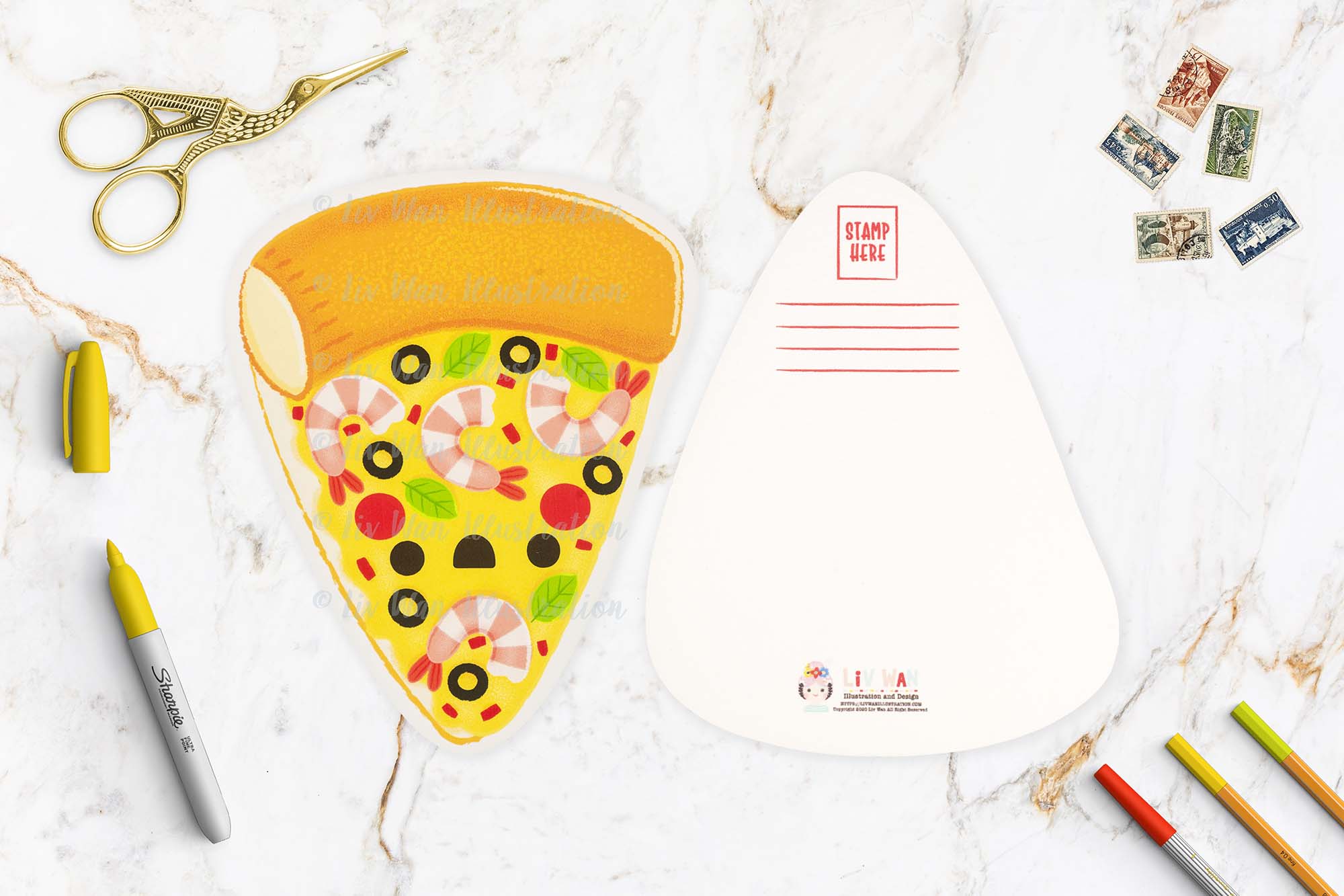 My first collection of 2025 is a I Love Fast Food Collection. In the past I have created collections for Italian food, Breakfast foods, pantry foods, condiments, and all of these have sold really well, so to start 2025 I present my Prawn Pizza Postcard.