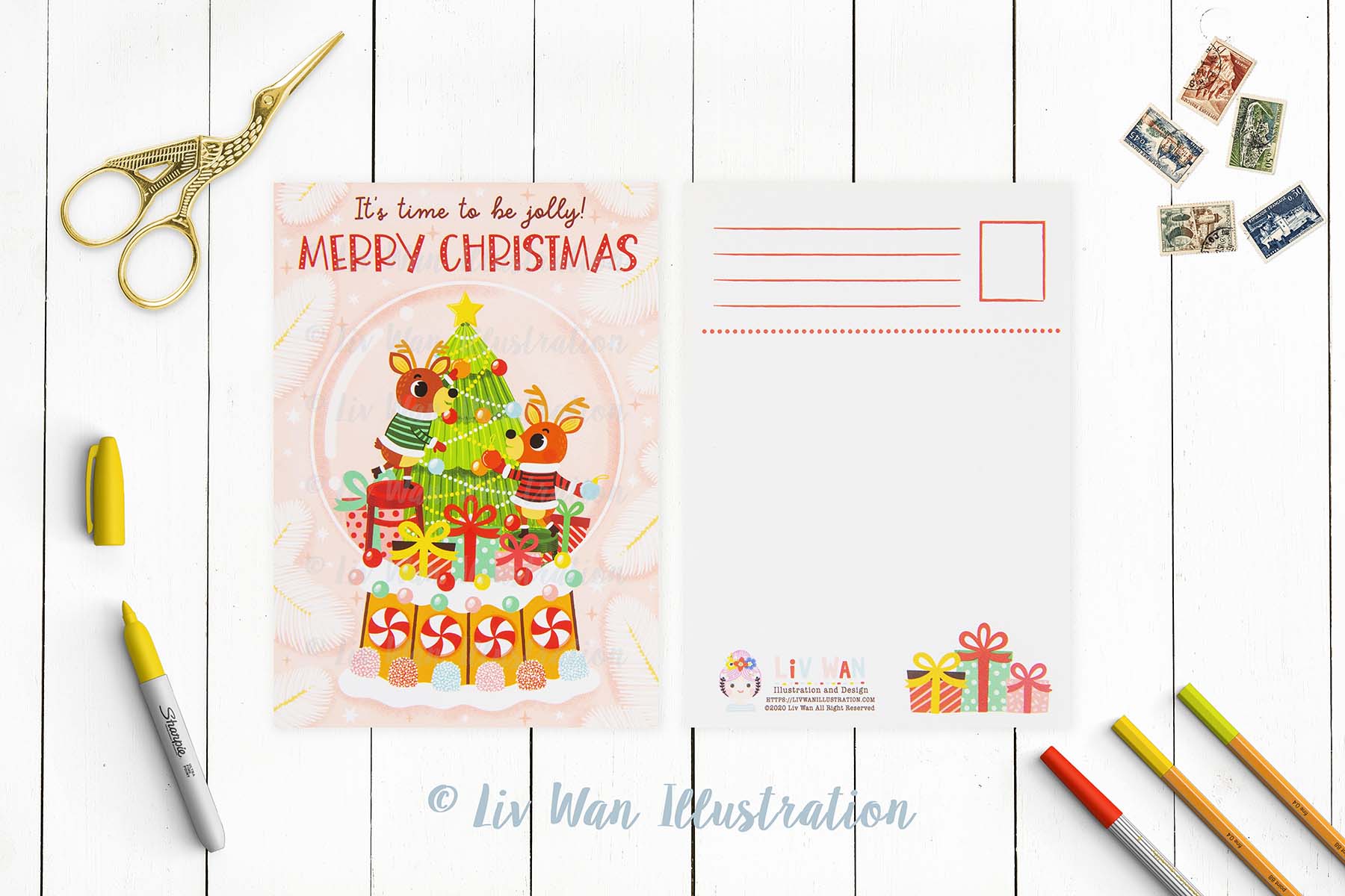 New for 2022 I’ve created a series of really fun Christmas Card postcards. This Reindeer Christmas Card is part of a growing collection of Christmas Cards postcards that I will be creating and updating in the future.