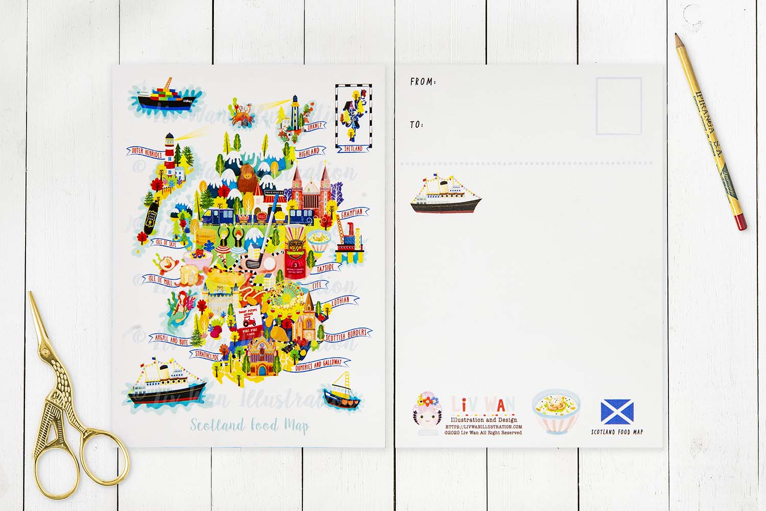 If you are collecting beautiful, unique, and special postcards, this Scotland food map postcard should definitely be added to your collection. I’m now doing a wholesale service, so if you are a retailer and you’re interested in my postcards, prints, or any of the other products I have listed on my website, please contact me anytime.