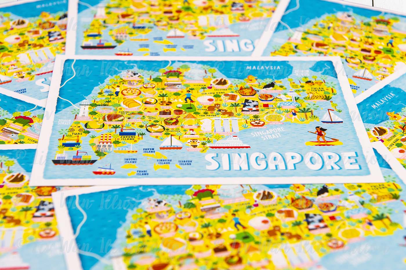 This Singapore Map Postcard is my latest map as of June 2021. As with all of my maps, I’ve tried to include as many locations, landmarks, and foods as space allowed.