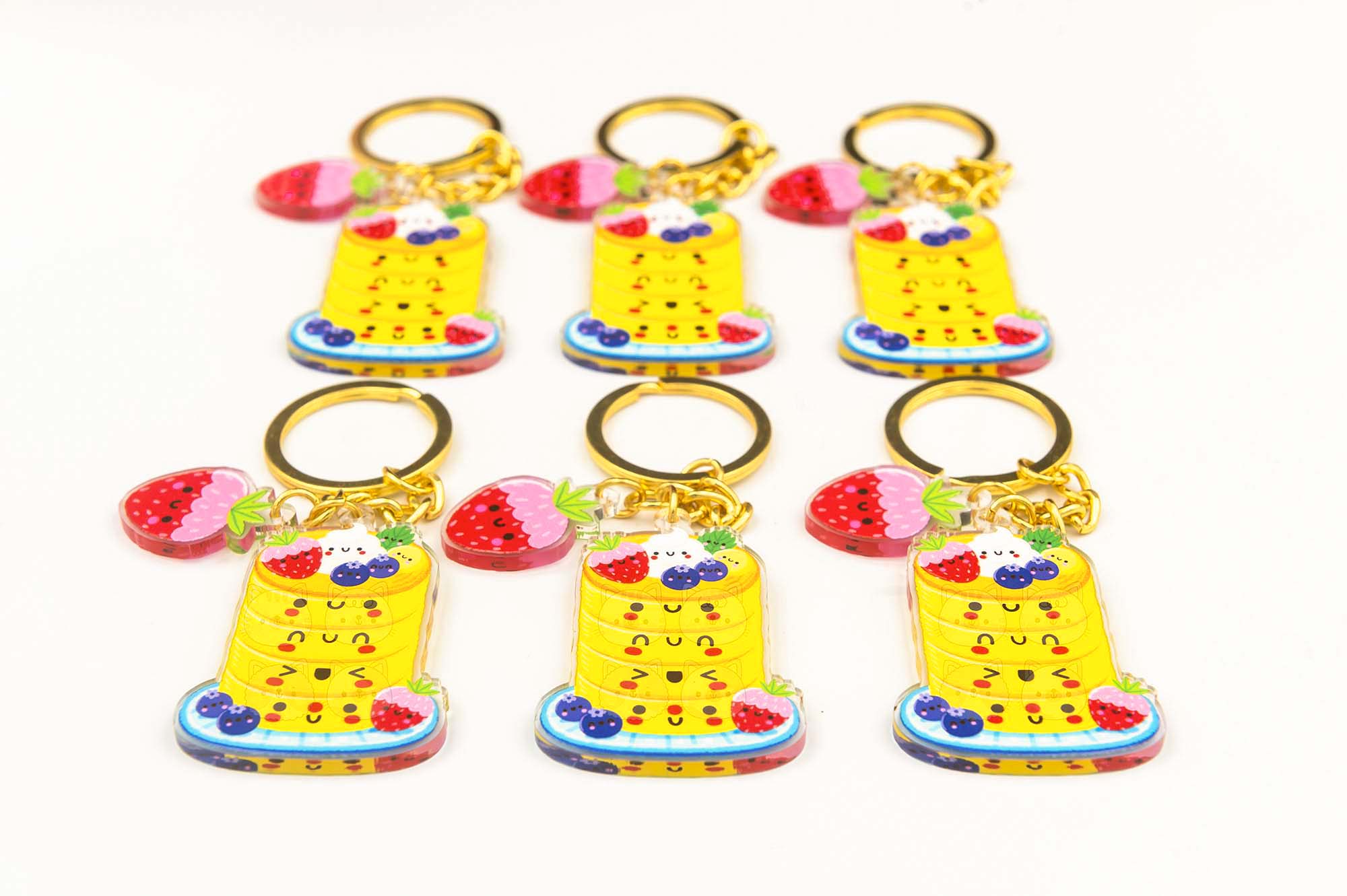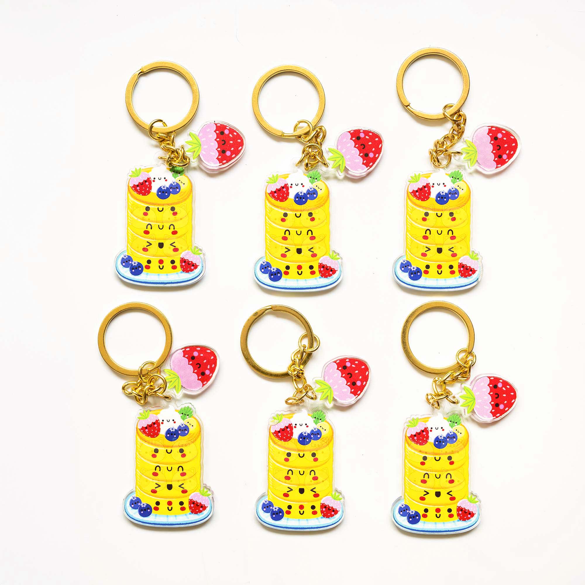 This Souffle Pancakes Keychain is made from 100% recycled eco-friendly acrylic and measures 2.5 inches along its longest length. It comes supplied with a gold chain and an additional keychain charm attached.