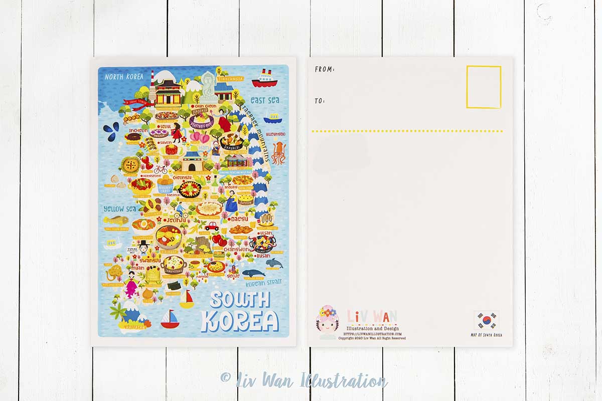 If you are collecting beautiful, unique, and special postcards, this South Korea Food Map Postcard should definitely be added to your collection. I’m now doing a wholesale service, so if you are a retailer and you’re interested in my postcards, prints, or any of the other products I have listed on my website, please contact me anytime.