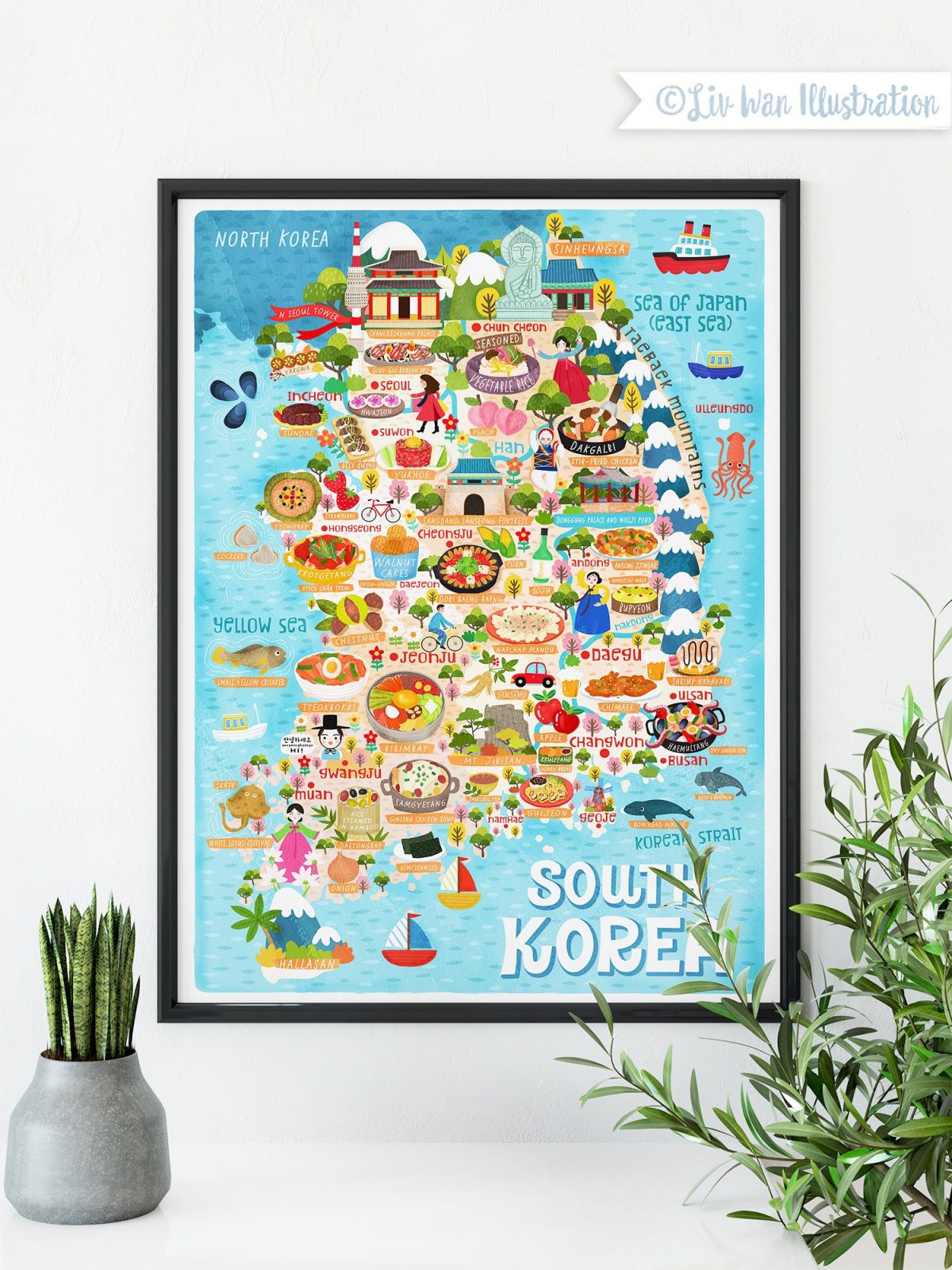 South Korea Food Map Poster for sale. I briefly visited Korea when I was a little girl, which of course is a really long time ago, but I absolutely loved it.
