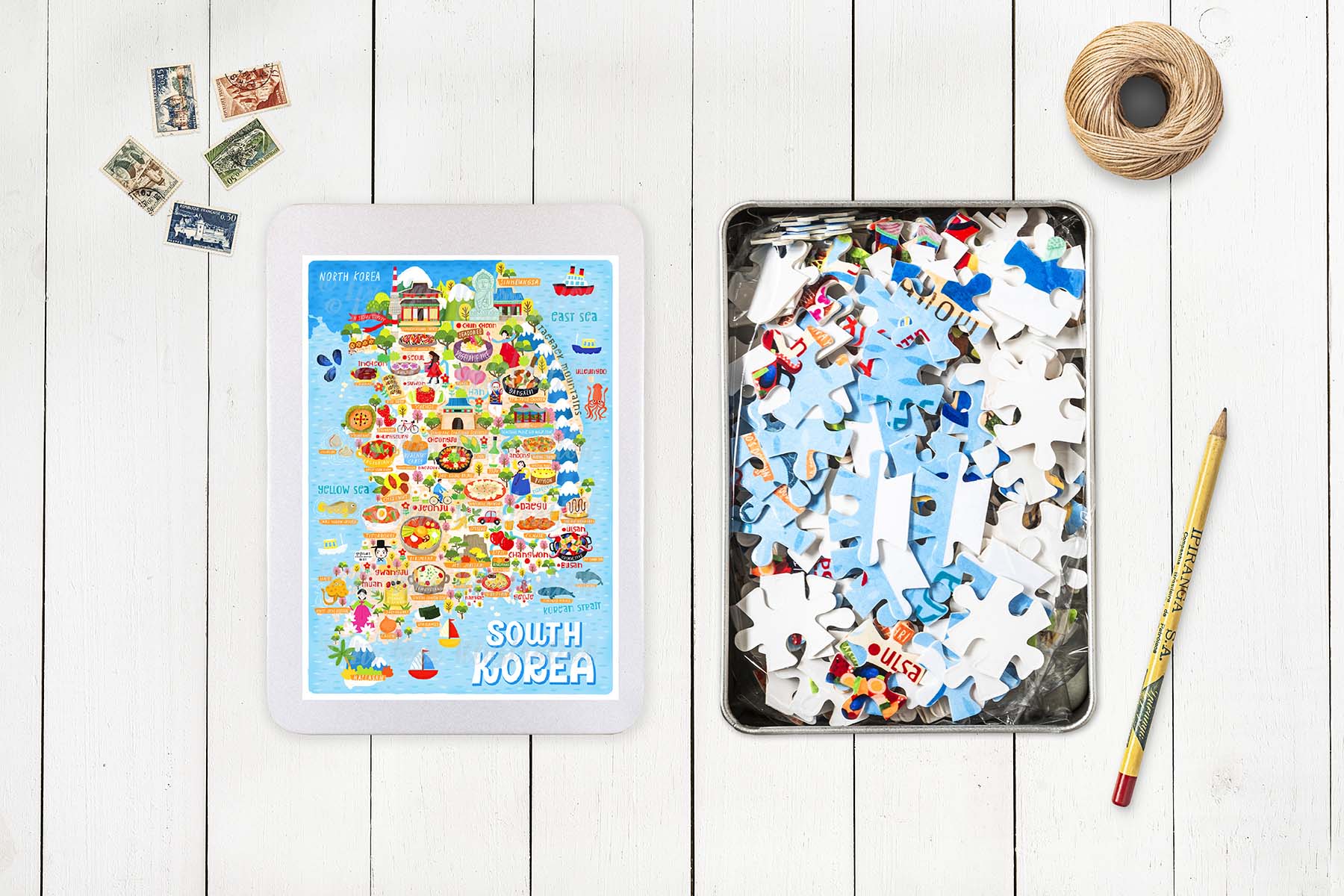 This South Korea map jigsaw puzzle is 28x40cm in size and contains 300 pieces. This jigsaw has a quirky shape which absolutely adds to the charm.