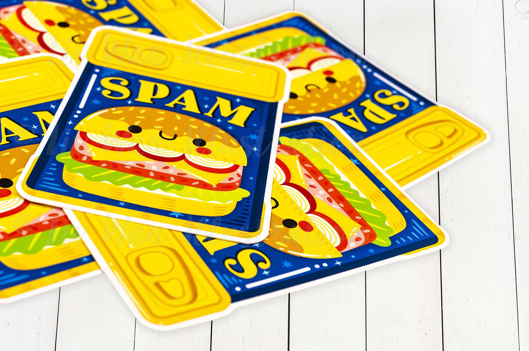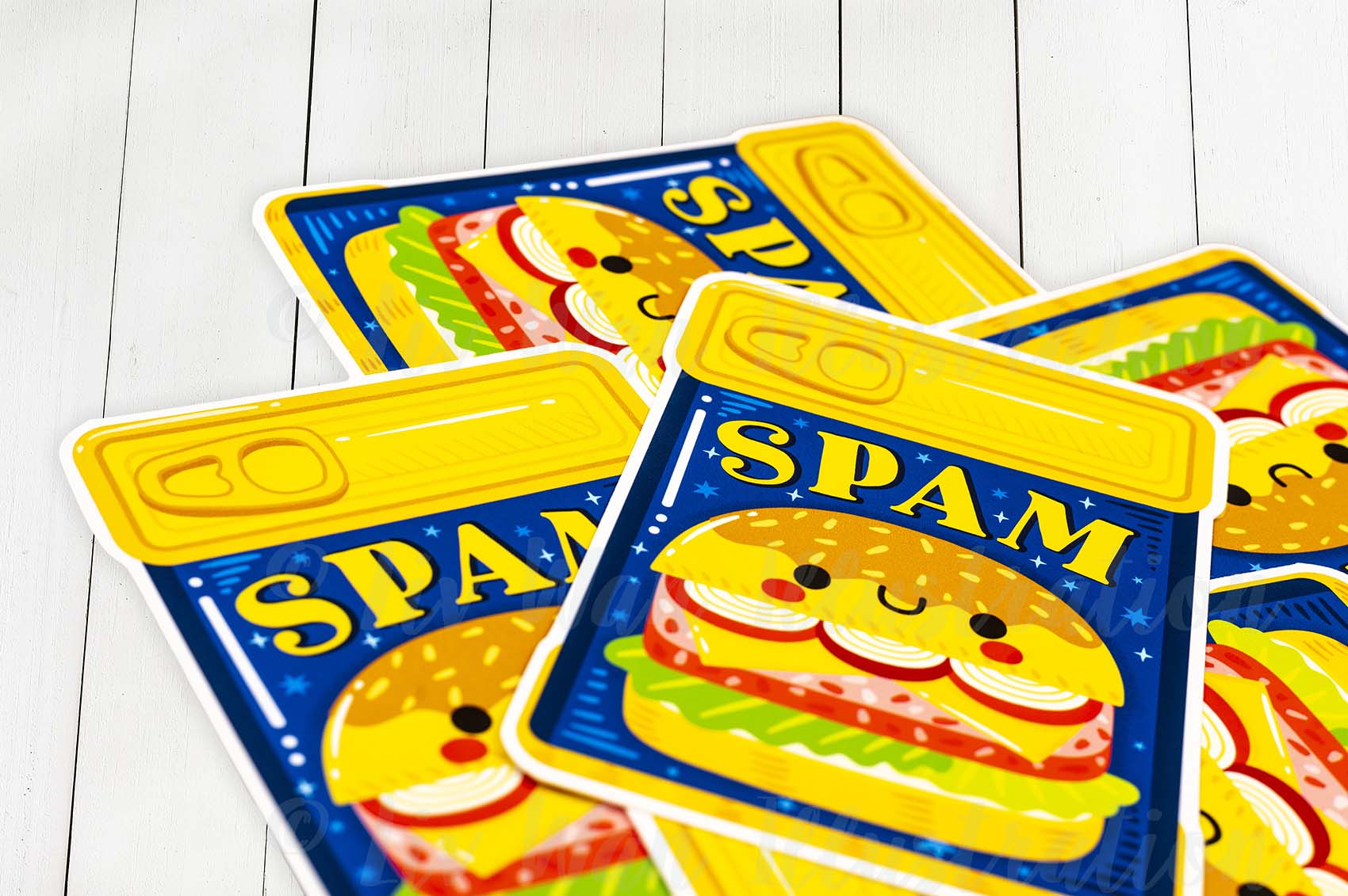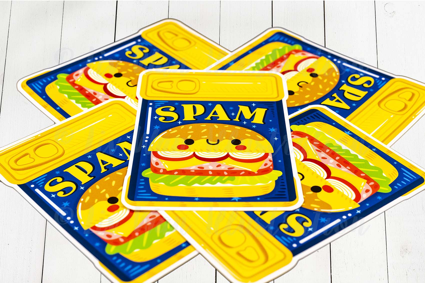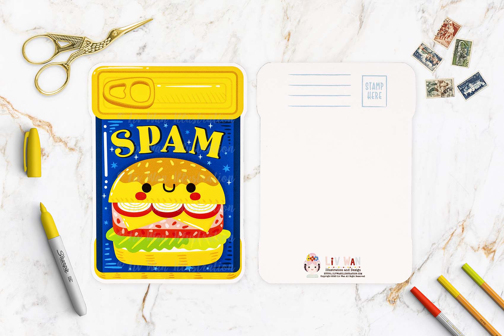This Spam Postcard features a really fun cute design on the front that perfectly shows off Spam and is expertly cut by myself.