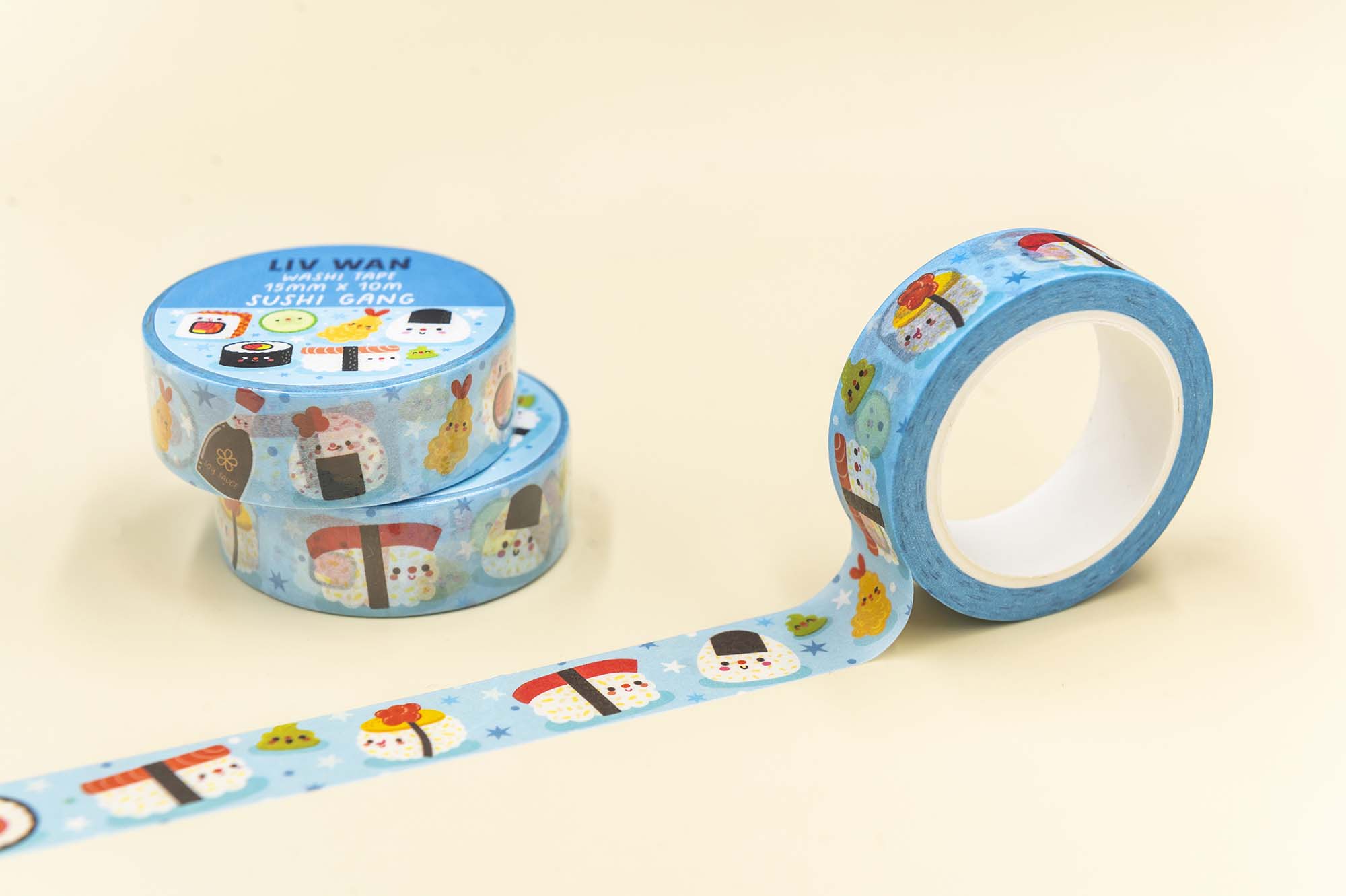 * Sale is for one roll of Sushi Gang Washi Tape 1.5cm wide by 10m long.