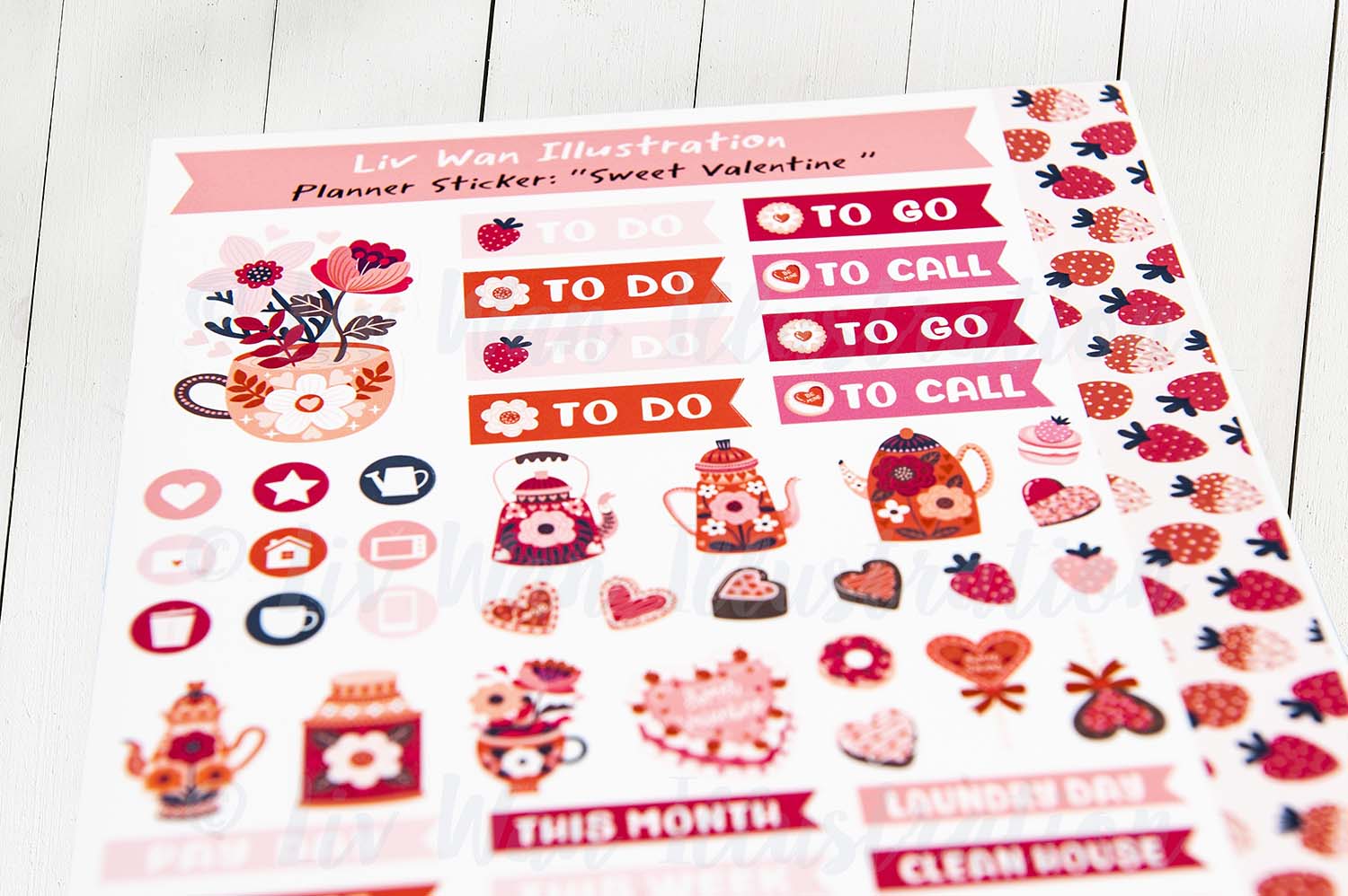 Listing is for a single Sweet Valentine Planner Sticker Sheet 6×9 inch sheet which includes 66 removable matte stickers.