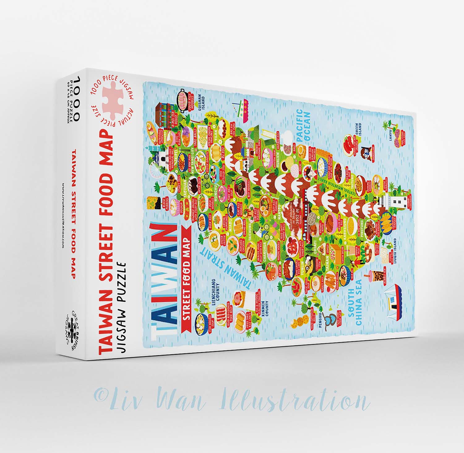 This Taiwan Street Food map jigsaw puzzle is 69x48cm in size and contains 1000 pieces. This jigsaw has a quirky shape which absolutely adds to the charm.