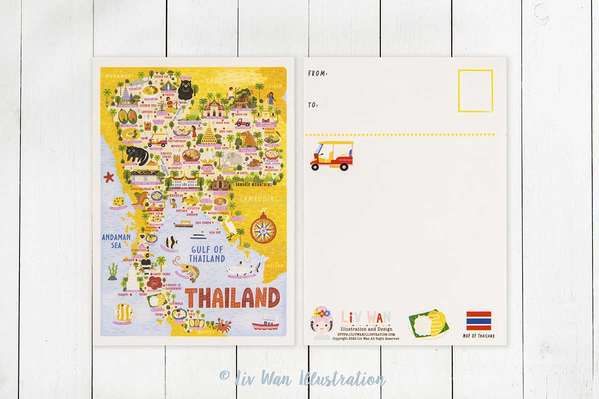 This listing is for a Thailand Map Postcard. The postcard size is 10.8 x 14.4 cm