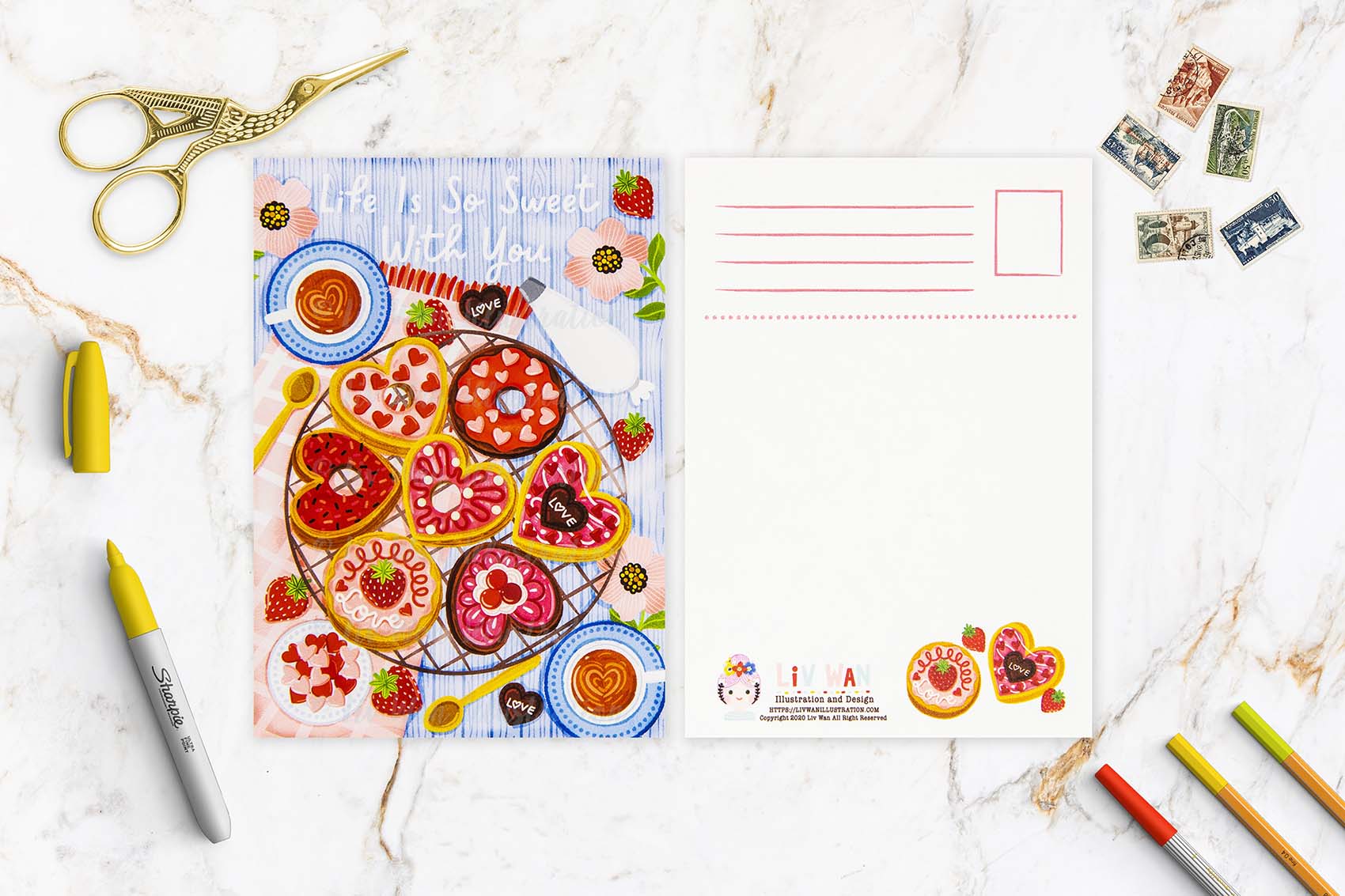 New for 2023 I have created a set of 10 Valentine’s Day Postcards. As usual, there are lots of food things going on but this collection was really fun to create, including this Valentine’s Day Donuts Postcard.