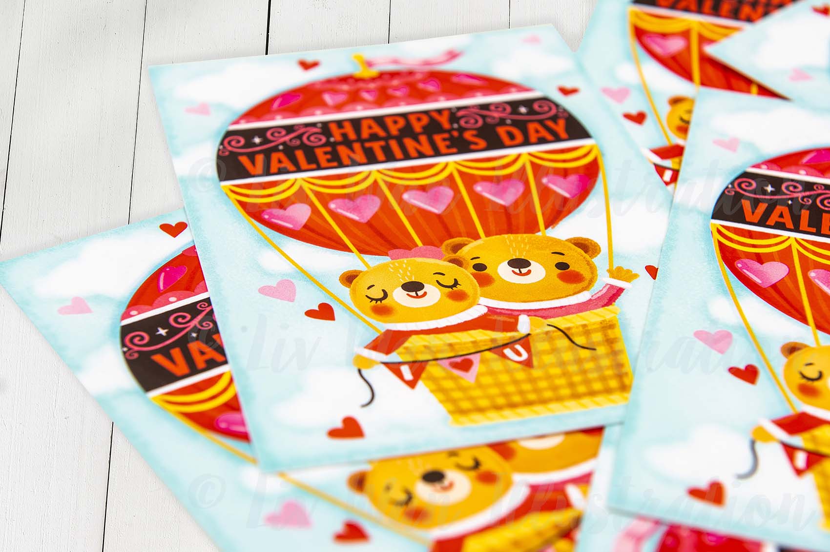 This Valentine’s Day Hot Air Balloon Postcard is A6 (10.5 × 14.8cm) in size and is printed on a beautiful heavyweight fine-art textured paper by myself, which provides beautiful colours, contrast, texture and is a joy to write on.