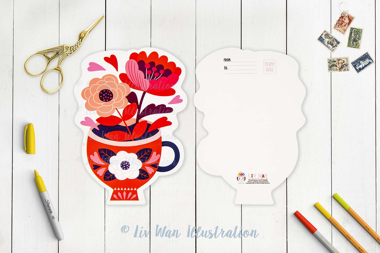 This Valentines Flower Teacup Postcard has been designed and made by myself. There has been no outsourcing, no printing in a foreign country whatsoever. This ensures this product is of the highest quality but also dramatically drops any carbon emissions. My aim is to keep everything as green as possible.