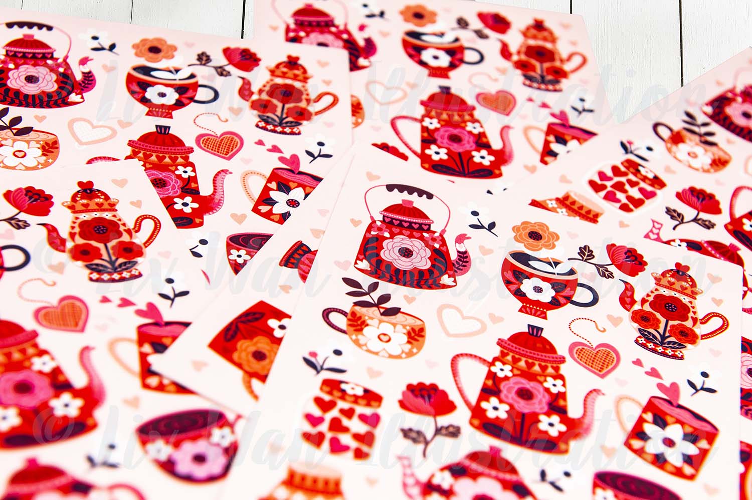 Valentine’s Day is one of my favourite seasons (it’s one of the few times of the year I get flowers and chocolates) so I created this Valentines Teapots Postcard.
