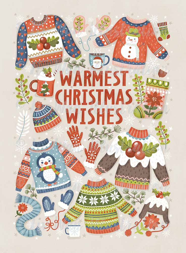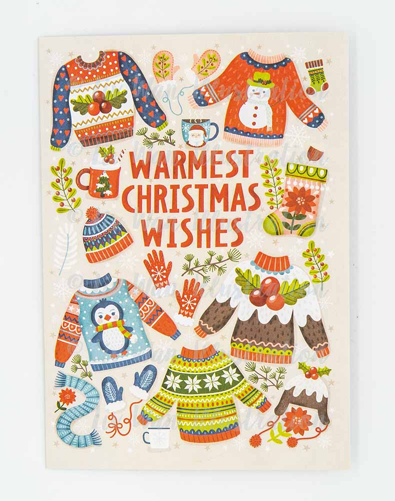 This Warmest Christmas Wishes Greeting Card is A6 size (105 x 148mm), is printed on 340sgm paper, and has a lovely satin finish. It comes with a seasonal red envelope.