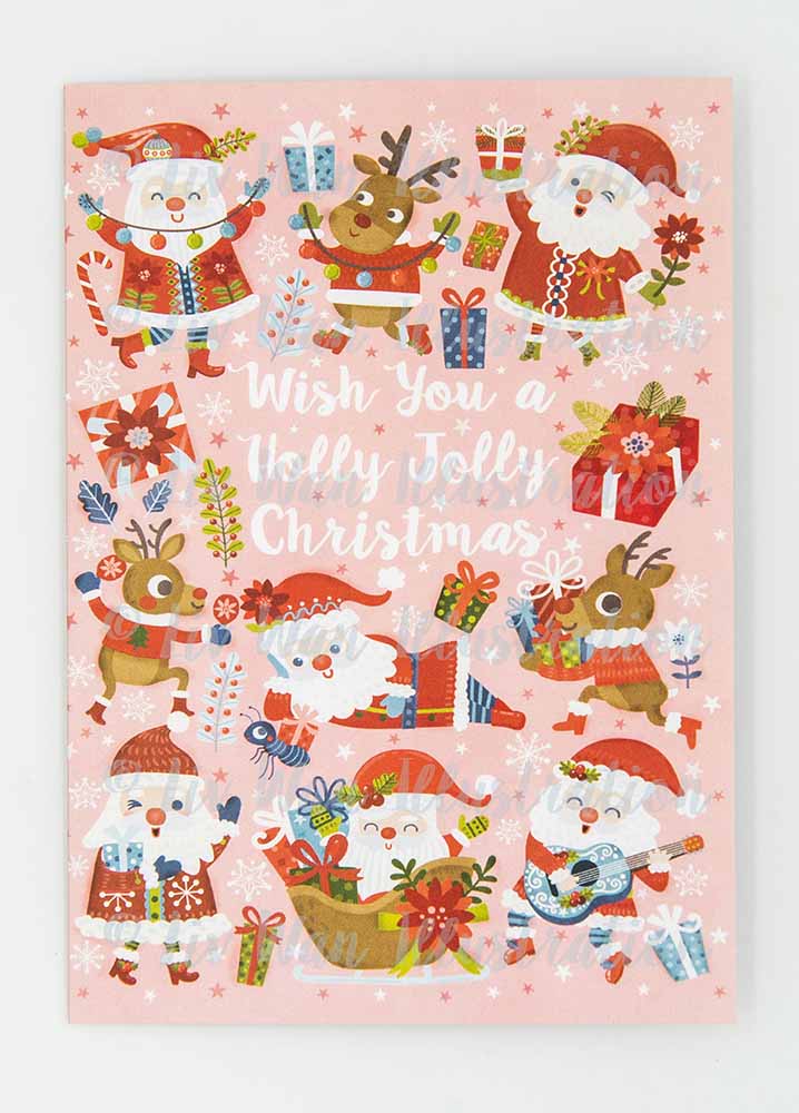 This Wish You A Holly Jolly Christmas Card is A6 size (105 x 148mm), is printed on 340sgm paper and has a lovely satin finish. It comes with a seasonal red envelope.